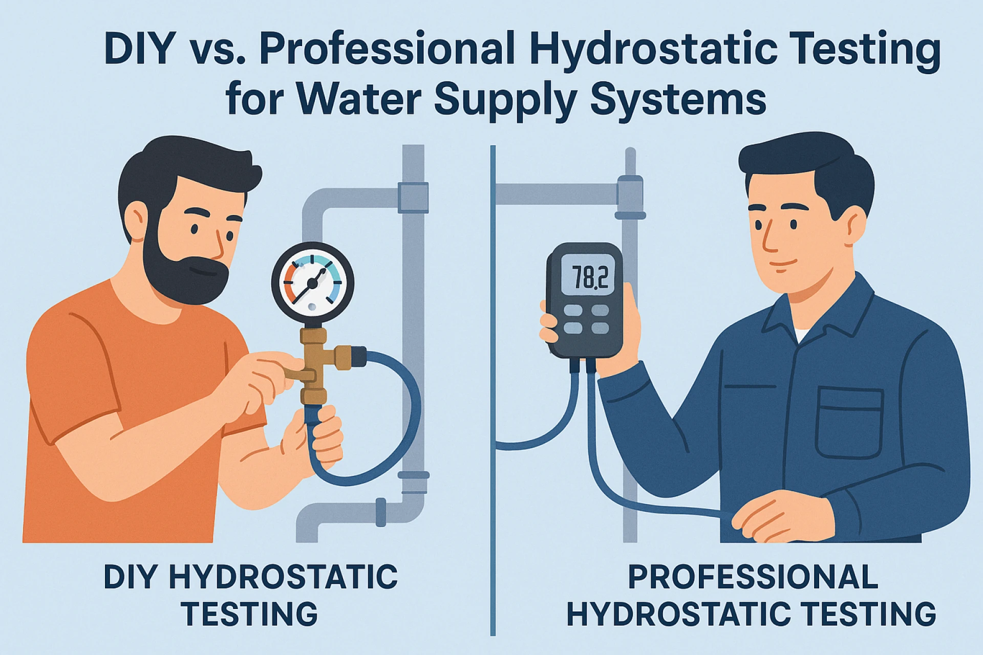 When you choose to go for a professional hydrostatic testing method, you let the experts do their job. The technicians come with years of experience, are licensed plumbers and are well-versed in handling checks and issues. It may seem expensive to hire professionals for a task that can be performed manually; however, it can prevent costly repairs and damage down the line. The professionals are trained to handle high pressure and implement safety procedures. They can quickly find even small leaks and finish the testing fast. Also, professional testing guarantees that you meet local building codes and rules.