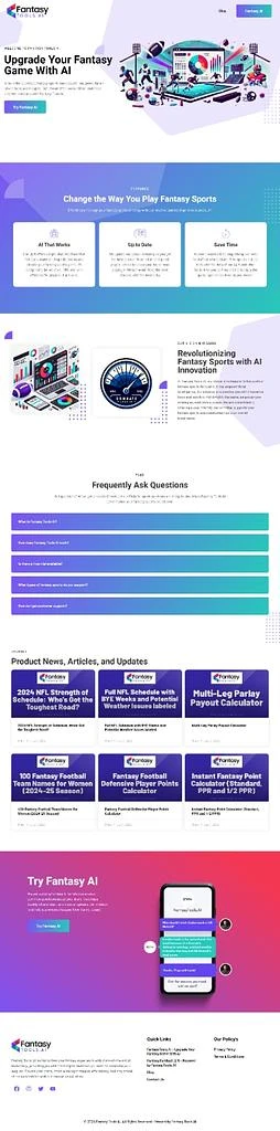 Fantasy Tools AI is a cutting-edge content and AI platform designed to revolutionize the world of fantasy sports. Leveraging advanced AI-driven tools and insights, Fantasy Tools AI empowers enthusiasts to make smarter decisions and enhance their game strategies. By utilizing large language models (LLMs), the platform provides tailored advice and predictive analytics, ensuring users stay ahead of the competition and achieve their fantasy sports goals.