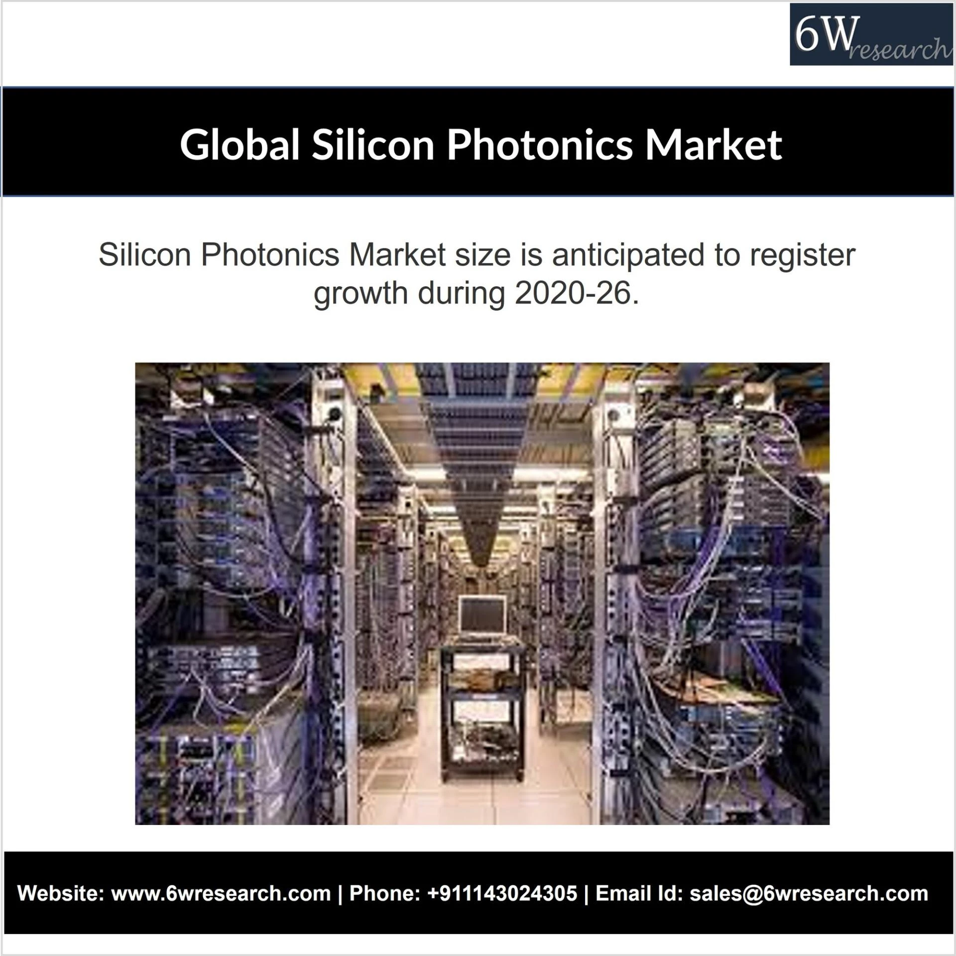 According to 6Wresearch, the Global Silicon Photonics Market size is anticipated to register growth during 2020-26. The integration of vast new technological solutions, developments in the IT sector, rising construction of data centers, deeper penetration of mobile phone users, and the advent of newer technological upgradations are leading to increased adoption of the technology is expected to proliferate the sound growth of the Global silicon photonics market in the upcoming six years. The use of optical fiber in the product to limit the use of copper in networking and storage area networks is contributing towards the threshold performance of the technology and is anticipated to trigger significant revenue growth for the market in the coming timeframe. As the world’s appetite for data connectivity is increasing, a rise in the evolution of such technologies is anticipated to lead to bountiful opportunities for better ailment and technical agility in the near future and offer great growth prospects to the silicon photonics market globally.
