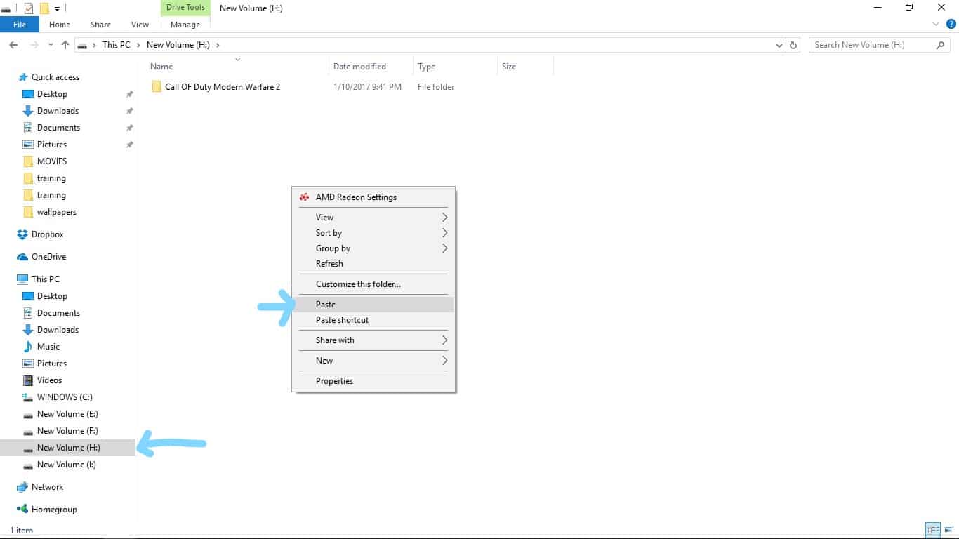 6) Open the shared folder and copy its content or just Copy the folder. And paste in any of your drives.