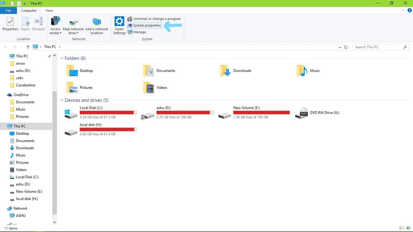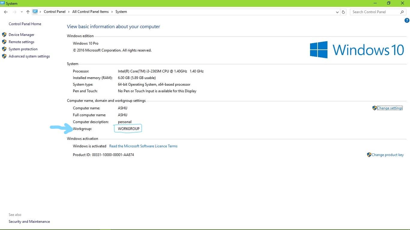 6) Now go to System Properties. And make sure that both PC has the same Workgroup.