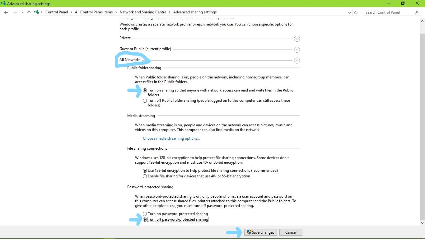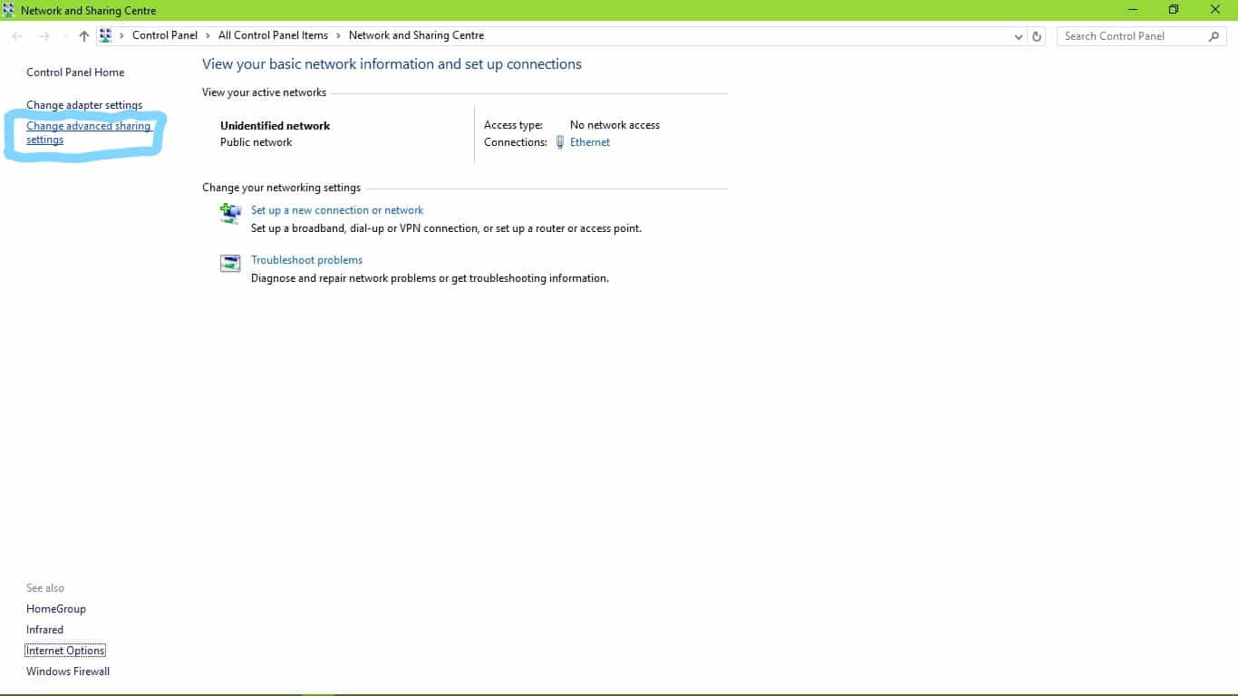 3) Then Go to Change advanced sharing settings.