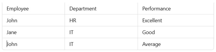 =XLOOKUP((Employee="John")*(Department="IT"), PerformanceColumn)