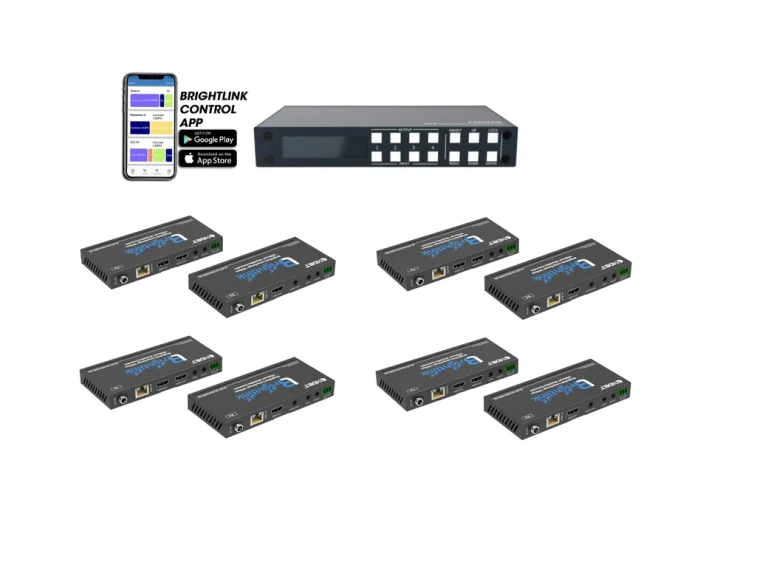 Brightlink matrix systems, like its popular 4x4 HDMI Matrix, support HDMI inputs up to 150m/492 feet using compatible HDBaseT extenders in transmitter-receiver configuration. Establishments can leverage such solutions for applications needing distribution to multiple displays scattered in a large facility. AV teams can simply send sources to receivers connected to displays at remote locations using a single-mode fiber infrastructure.