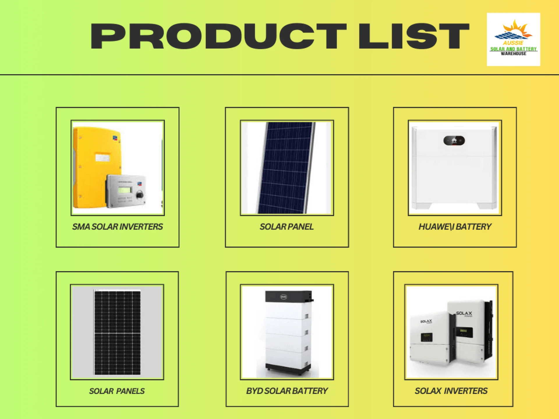 At Aussie Solar and Battery, we proudly offer a comprehensive range of high-quality solar products to meet all your energy needs. Our product section includes: