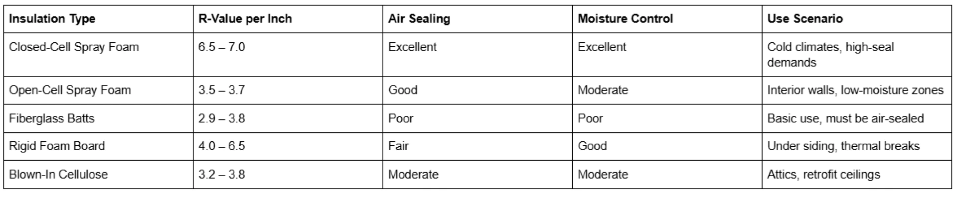 Q4: How do I choose between open-cell and closed-cell spray foam? Use closed-cell for structural support, moisture resistance, and high R-values. Use open-cell for soundproofing and where moisture isn't a concern.