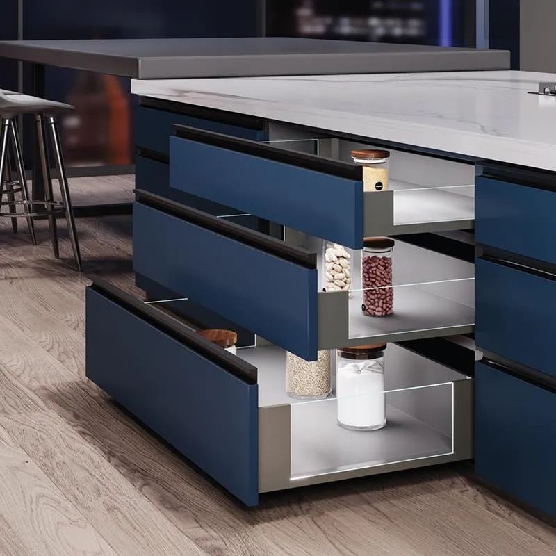 A “light” drawer with tea bags is very different from a drawer full of cookware. Overloading is one of the fastest ways to ruin kitchen drawer interior fittings. For soft-close slides, capacity varies by model, and many standard options are built for typical cabinet loads, while heavier versions handle more.