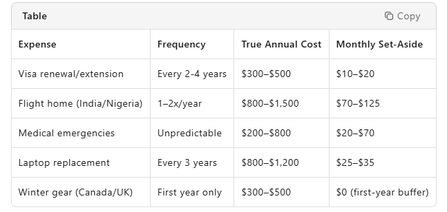 - Emergency fund: Aim for €500/$600 as a buffer for visa delays or medical issues