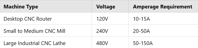 Amperage determines how much current a CNC machine draws. Here’s a general estimate based on machine size:
