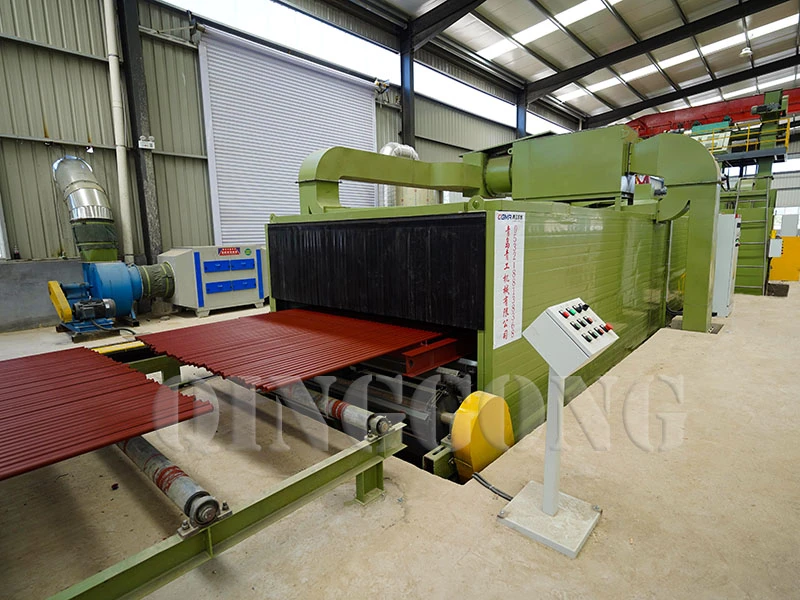 To avoid the raw paint damage the metal roll is transferred by the chain conveyor with bearing elements. It provides minimal contact with painted surface. The paint that couldn’t reach the product is taken with air flow and directed to labyrinth filters. The filtered exhaust air is emitted to the atmosphere.