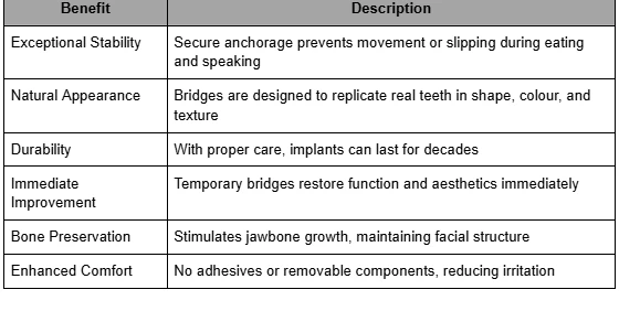 - Temporary Bridge Placement – A provisional bridge may be attached immediately, allowing patients to maintain normal function and appearance while healing.