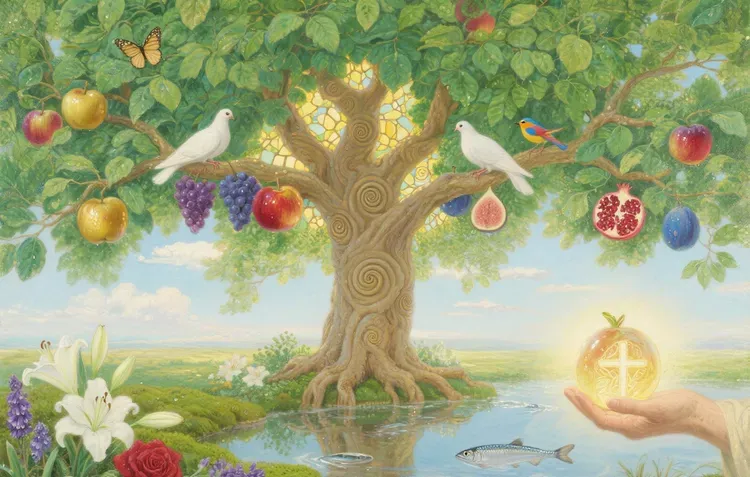 The tree of life in Revelation symbolizes eternal healing, provision, and divine abundance in the New Jerusalem. Its twelve fruits and healing leaves indicate completeness, spiritual restoration, and God’s ultimate blessing for humanity.