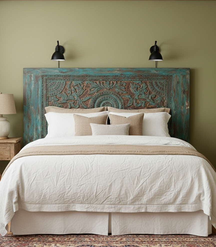 Each piece in the Heritage Collection carries authentic history. In Rajasthan's traditional workshops, artisans spend weeks hand-carving door panels destined for your sanctuary. The lotus emerges petal by petal through patient chisel work. Jali screens are pierced opening by opening, each geometric flower bearing the individual rhythm of the carver's hand. Many pieces begin as reclaimed architectural elements from century-old havelis—wood that has weathered monsoons, witnessed celebrations, sheltered generations.