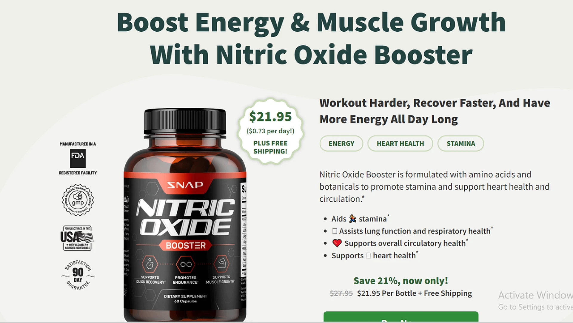 Snap Nitric Oxide Booster Pills stand out as a potent supplement for enhancing physical performance, boosting endurance, and supporting overall cardiovascular health. With a blend of scientifically backed ingredients, this supplement promises to deliver tangible benefits for athletes and fitness enthusiasts. While individual results may vary, the positive user reviews and the focus on natural, safe ingredients make Snap Nitric Oxide Booster Pills a worthy addition to your fitness regimen.