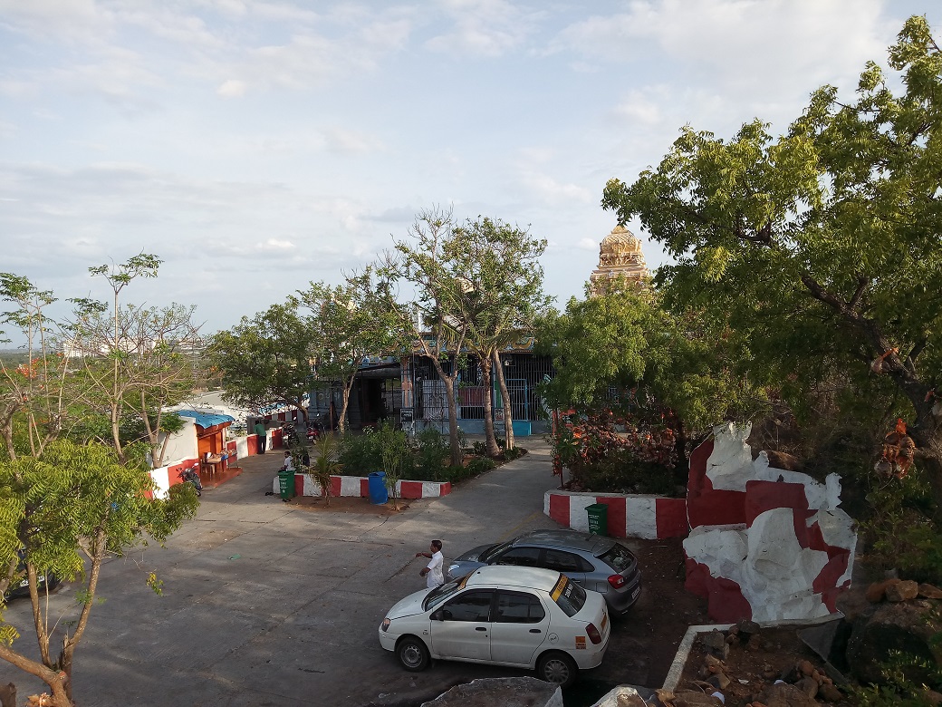 The above photo was taken at the foot of the hill which contains an arch with a large statue at either side, and a Pillayar (Ganapathy) Temple on the side. People who wish to walk can park their vehicles here and go, which is what we did. But there is another route for cars/bikes to go till the top.