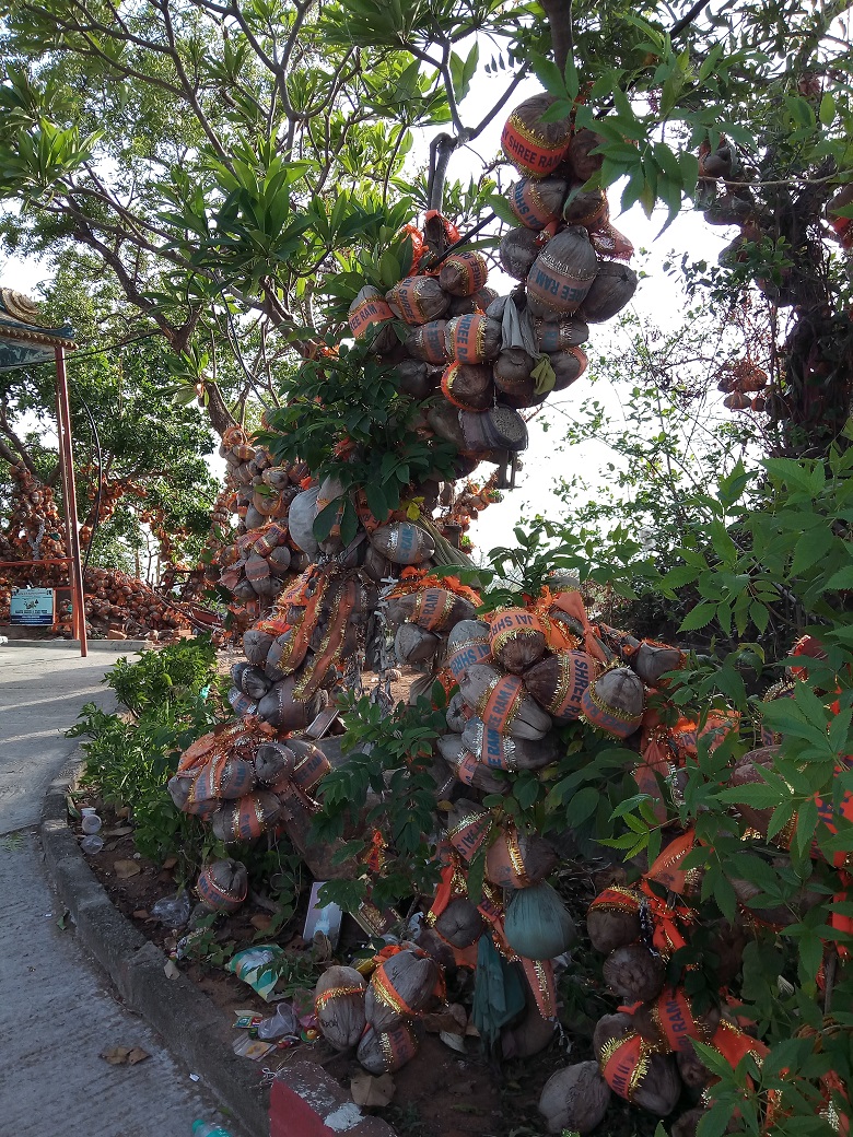 I think the best time to visit this Temple is either early in the morning or in the evening. We found many coconuts tied to trees containing paper with wishes – probably devotees have tied them praying that their wishes would come true. Here it is –