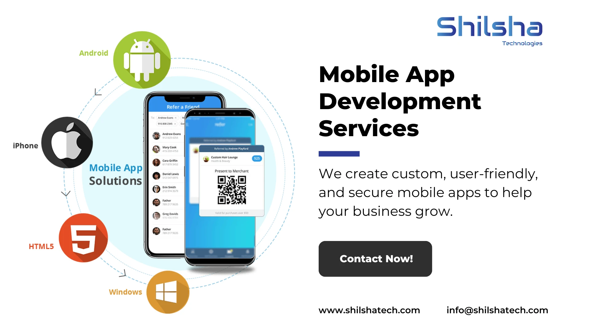 - Mobile Responsiveness: With a wide variety of devices available in the market, it\'s crucial that your app is compatible with all screen sizes and operating systems. Shilsha Technologies specializes in creating mobile-responsive apps that adapt to different devices, ensuring a consistent user experience across all platforms.