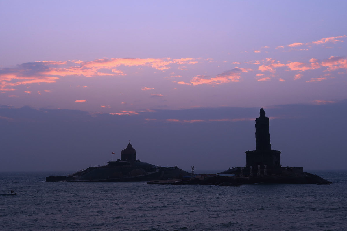 I woke up to some quintessential South Indian melody. The alarm was yet to go off and me getting up before that doesn’t happen that often. Following the music, I opened the door that leads me to the balcony. It was way before the sunrise and I could see upset shades of blue and pink hues playing the charade with the clouds. It was too early for so many people to be on the streets but when in Kanyakumari Sunrise is something you cannot afford to miss. I took just a few minutes to put my affairs in order and I was out of the hotel to witness the most magical sunrise of my life. Apparently, there is a sunrise spot in Kanyakumari which boasts the best view and I didn’t have to try hard to locate it because in that ungodly hour I could see bunch and bunch of people going in one direction. I followed them without giving a second thought.