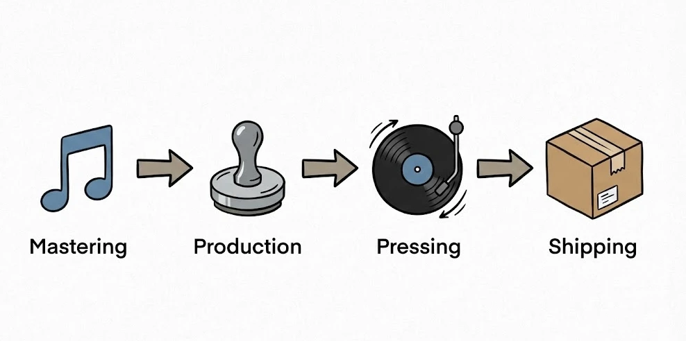 From placing an order to receiving finished records typically takes 3-6 months. This timeline includes several distinct phases that can't be rushed without compromising quality.