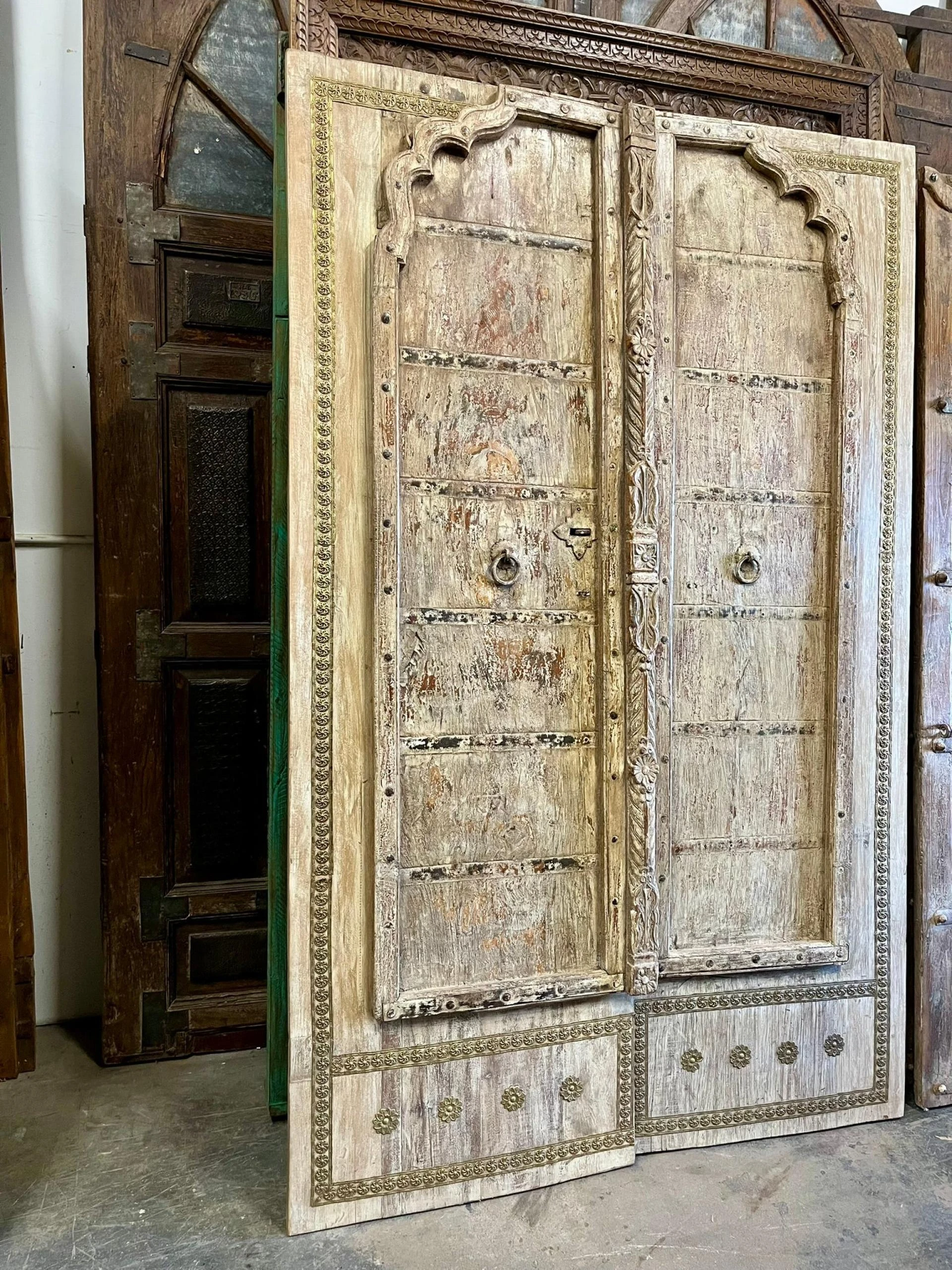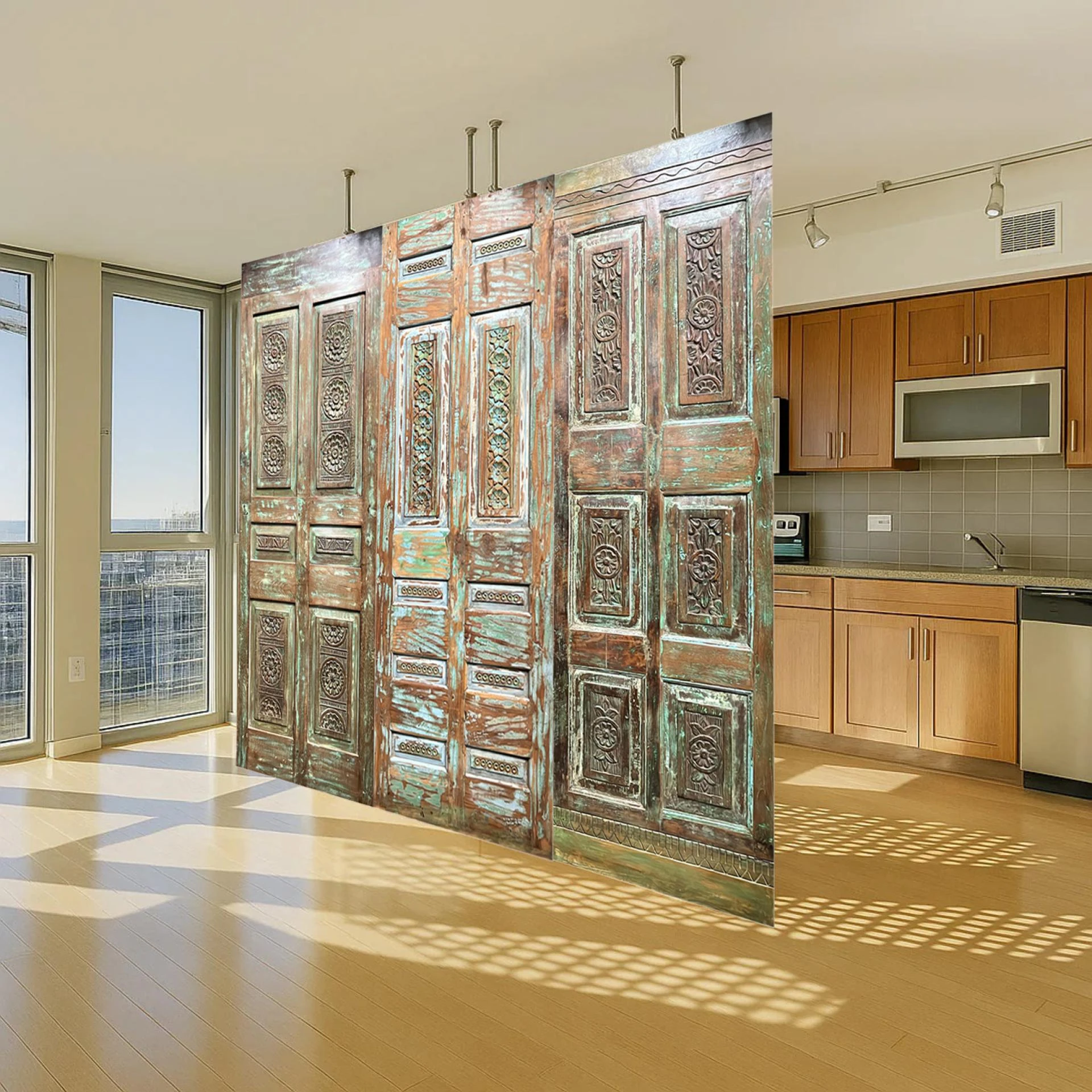 And then there are the vintage door panels—weathered, heavy, imperfect in the best way. You'll find them repurposed as wall art, sliding doors, or even headboards. Some are chipped and cracked from years of use; others still carry the original iron studs and hand-forged handles. But none of that's a flaw—it's the point. These doors feel real. They've been somewhere. They're singular pieces that bring warmth, texture, and personality into modern homes.