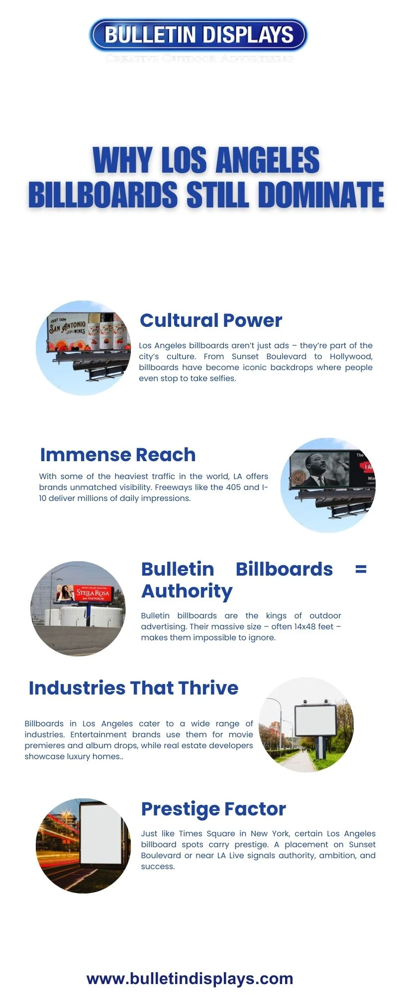 Some people think digital ads will eventually replace outdoor advertising. But truth be told, in LA that’s unlikely. People will always be driving, commuting, and living in physical spaces. A bulletin billboard in Los Angeles will always command attention in ways an Instagram story never can.