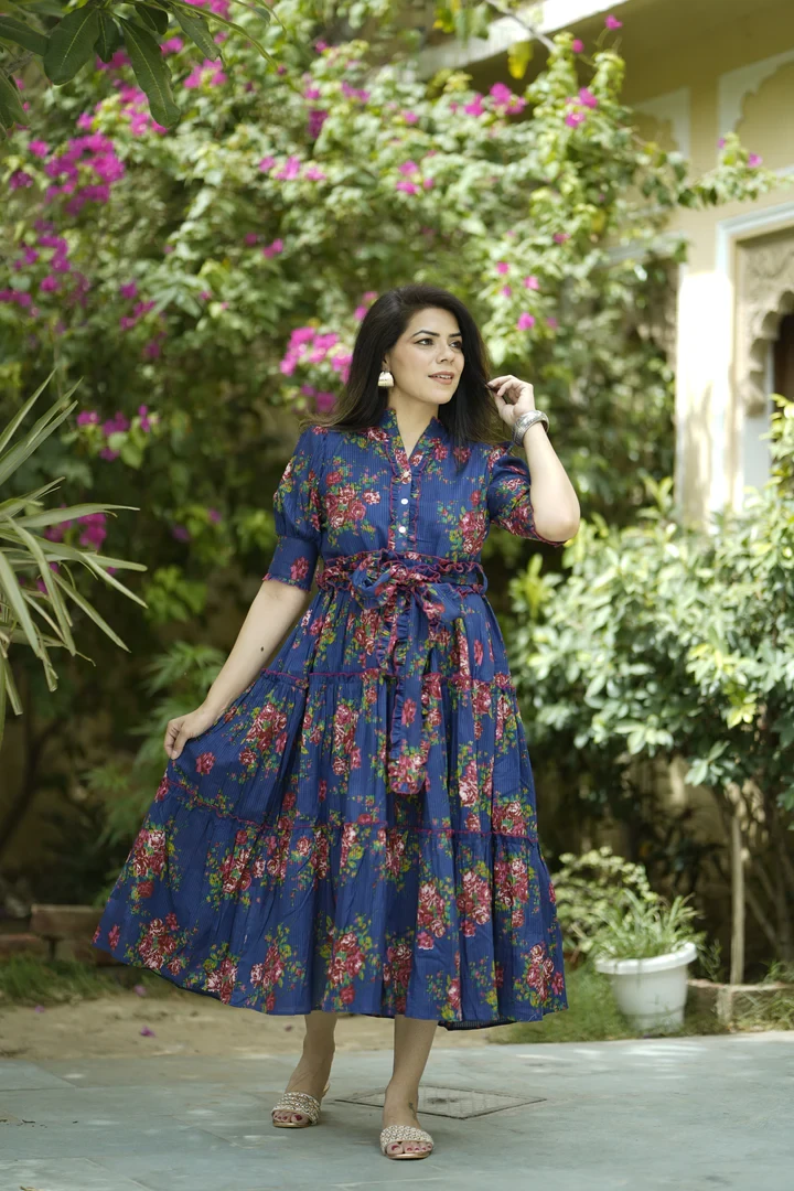 The allure of cotton dresses is classic and stands the test of time. They remain a favorite because of their timeless elegance and versatility, making them a wardrobe must for many generations to come. The Jaipur Morni Cotton Printed Kurti Dress and the Blue Floral Print Puff Sleeve Fit & Flare Midi Dress are excellent illustrations of how cotton dresses blend traditional and contemporary features to stay fashionable year after year.