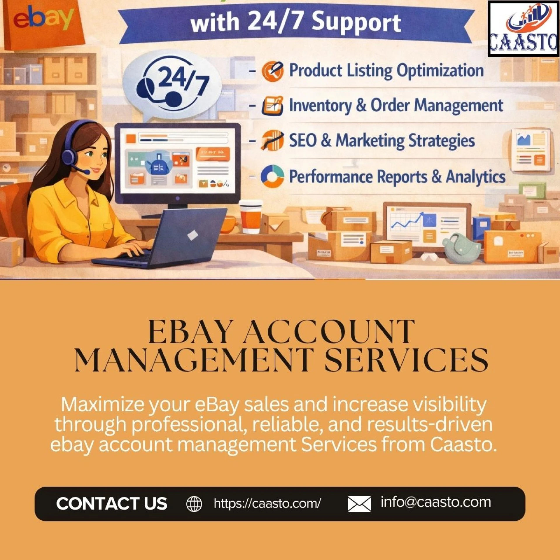 Digital marketing and E-commerce services providing by caasto. They offer services to assist sellers with their accounts and help them increase their businesses on various online marketplaces. They offer services on major online marketplaces such as Etsy, Amazon, Flipkart, Meesho, eBay, and others. They provide services that will help sellers improve their product listings, manage their advertising campaigns, improve their search engine optimization (SEO), and manage the backend of their operations so that they can increase their visibility and sales. Caasto also provides additional services such as creating brands, designing graphics, marketing through social media, developing websites, and creating smart selling strategies to help sellers grow their businesses over time.