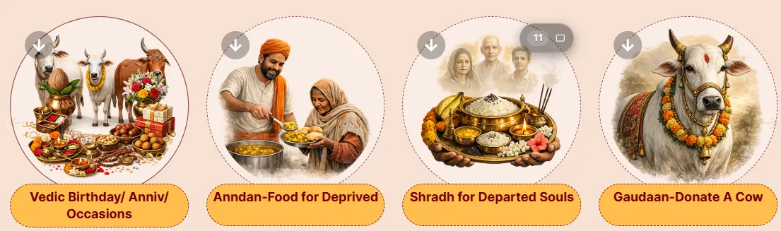 Celebrations become truly special when they are connected with seva and spirituality. Krishnayan Event Seva shows us a simple way to make our important days more meaningful. By feeding cows, helping the needy and performing sacred rituals, we invite peace and blessings into our lives.