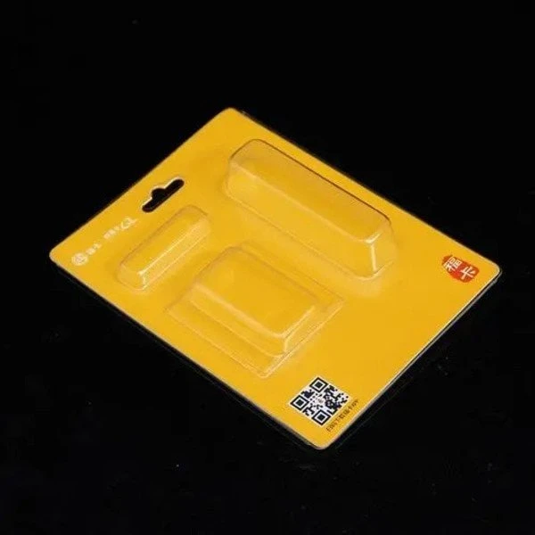 Blister card is a transparent material used for thermoforming packaging (generally PET polyester, PVC polyvinyl chloride, PS polystyrene and other materials), which is heated by paper that has been coated with thermoforming oil. Press, shrink and bond together to form a complete, regular and transparent packaging product.